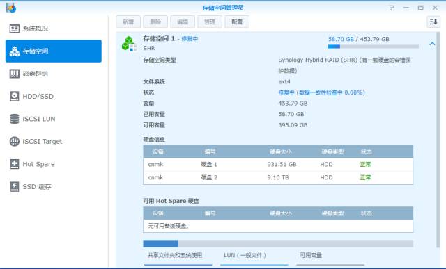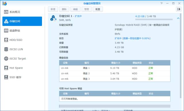 此时会对添加硬盘后的存储空间进行数据一致性检查,时间较长,过程中仍然可以存取NAS文件。