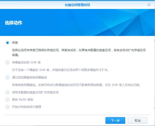 ——针对支持热插拔的机型,都不用关闭NAS,直接开着加盘换盘;简洁的导引操作,跟着往下点一步两步三步四步……就搞定了